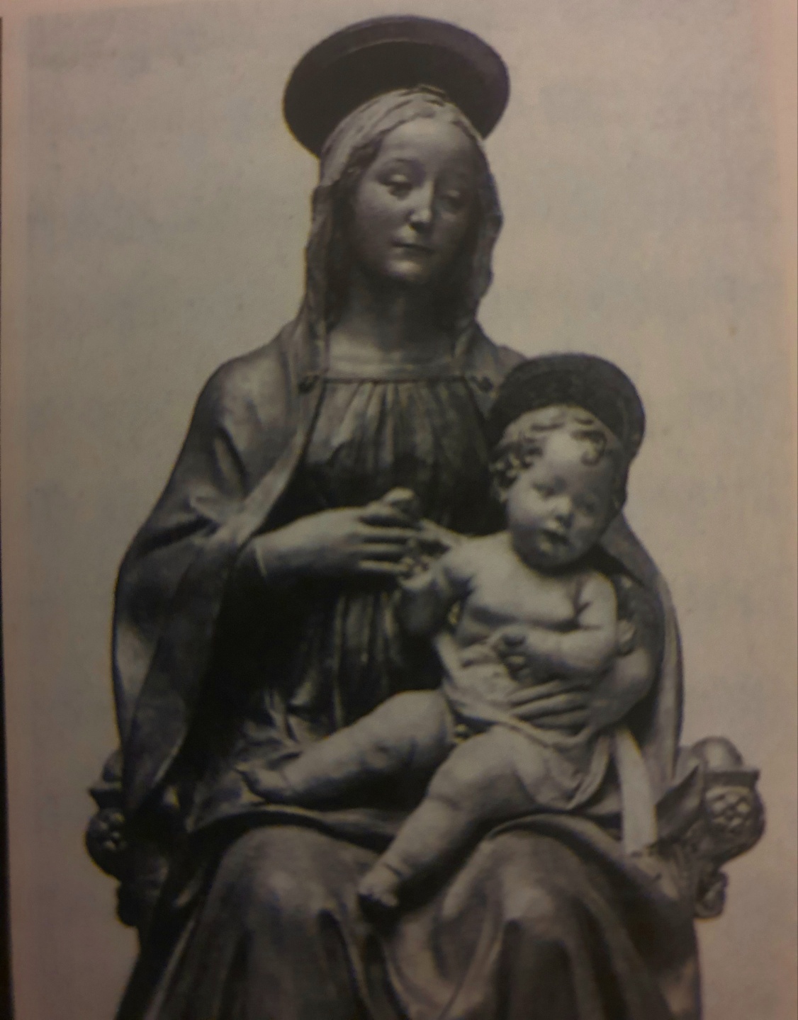 아이를 데리고 앉아 있는 성모는 제단화에서 수없이 변화를 겪은 주제이다. 그렇지만 피렌체에서는 조각 작품에 자주 사용되지 않았다. 대리석보다는 오히려 점토(테라코타)로 만들어진 작품을 더 자주 접하게 되는데, 이때 점토 작품은 그 자체로 매력이 없는 까닭에 아주 세밀하게 채색되는 것이 보통이었다. 16세기가 시작되면서 점토는 현저히 줄어들었다. 기념비적인 특성을 요구하는 경우가 많아지면서 사람들은 돌로 된 작품만 좋아하였다. 롬바르디아 지역처럼 점토 작업이 계속되는 경우에도 다채로운 채색만은 사라졌다.