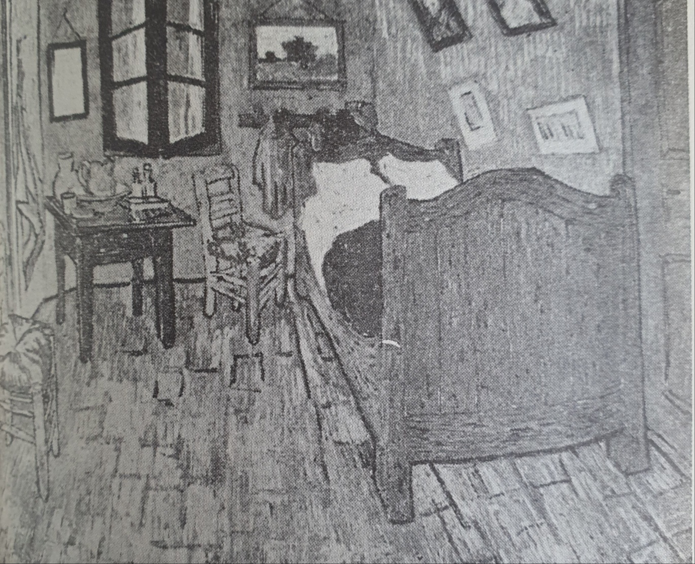 이같은 특징을 살펴보고 나서 다시 한번 이 화면 전체를 잘 바라보면 아무런 특징도 없 는 방을 아무런 특징도 없는 수법으로 그려낸 작품이라는 당초의 인상은 사라지고 우리는 ‘방 전체가 마치 한낮의 꿈인 양 괴괴한 분위기에 차 있다는 것을 알아차리게 된다. 도대체 고흐는 왜 이같은 기묘한 작품을 그렸을까?