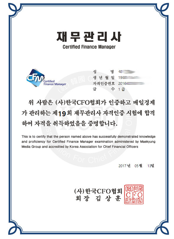 **재무관리사 자격증(CFM, Certified Finance Manager)**은